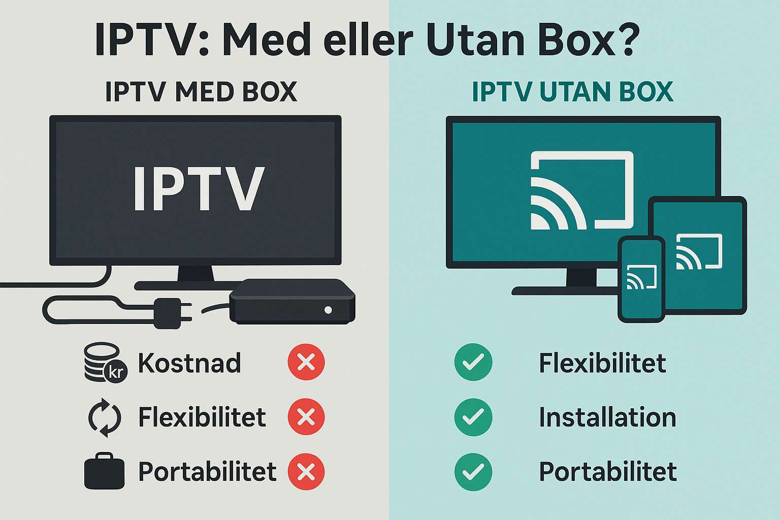 | Aspekt | IPTV Med Box | IPTV Utan Box |